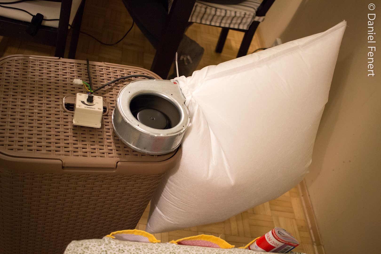2. Wentylator zamocowałem pod klapą kosza na pranie