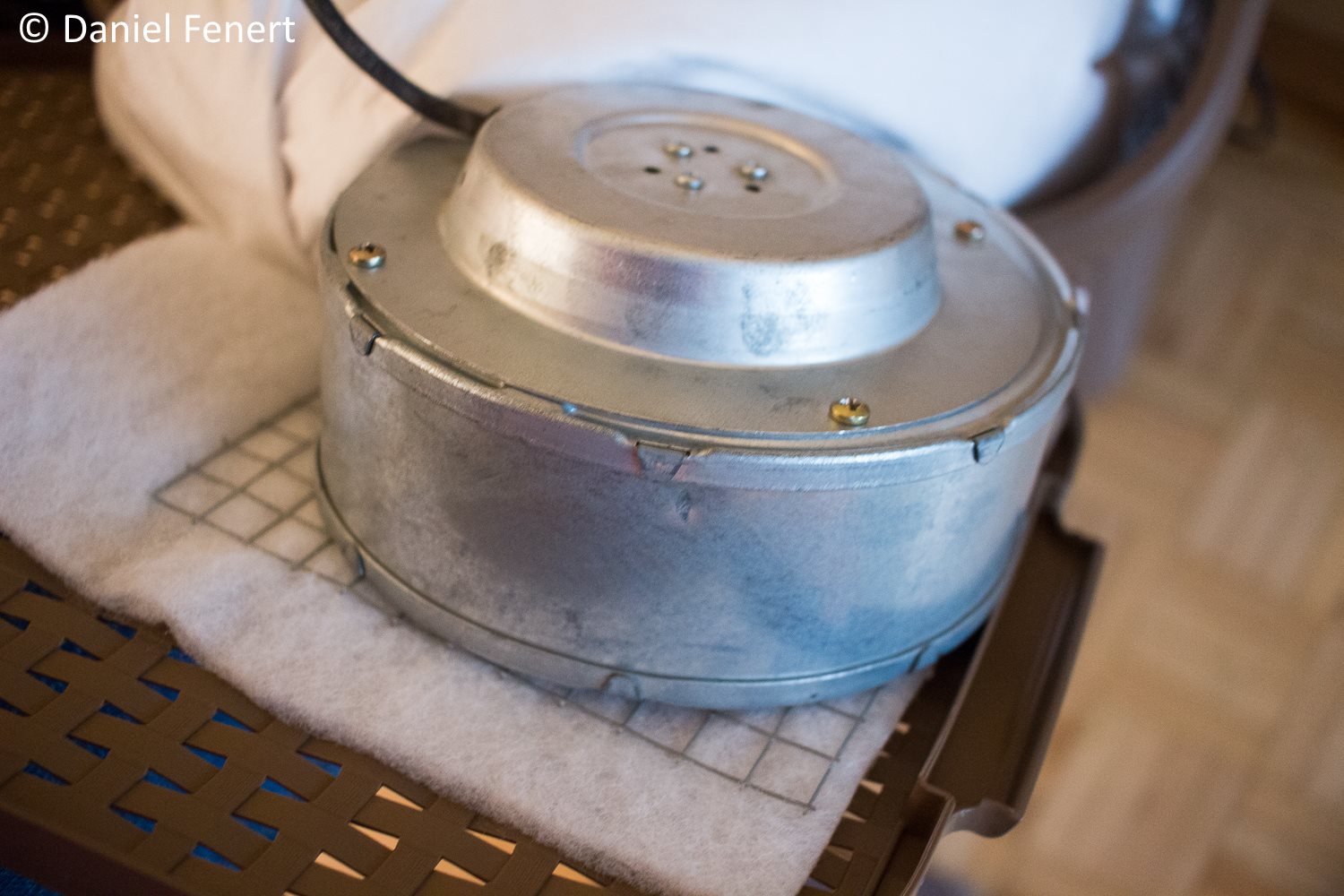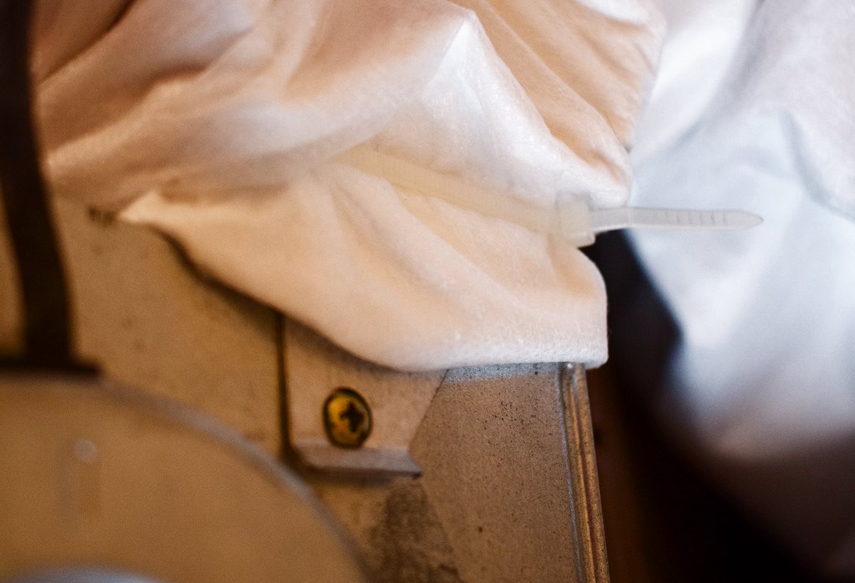 5. Worek z właściwego filtra przymocowany do wentylatora zipami + przyszyty ręcznie z jednej strony wokół zipa bo uciekał