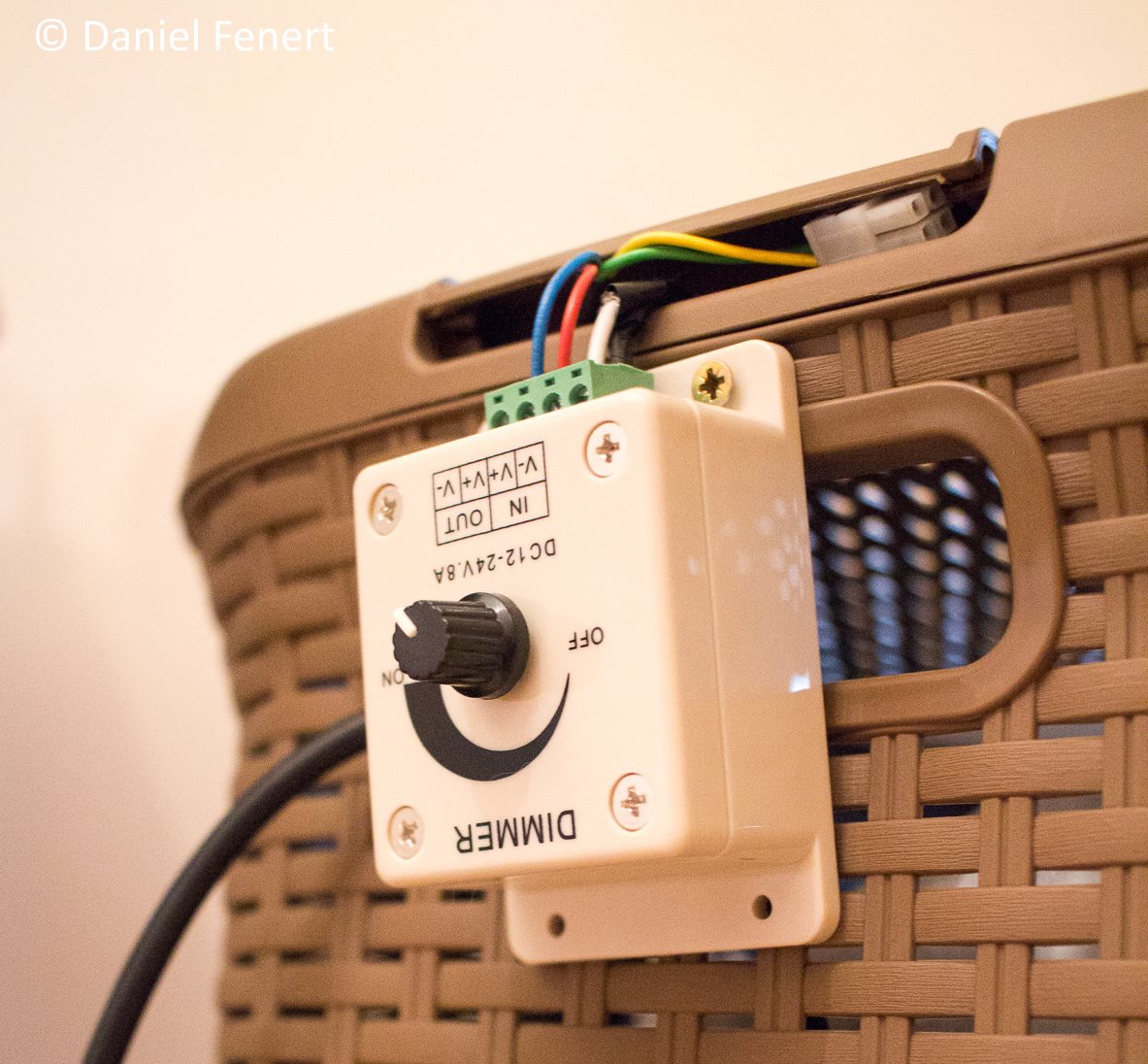 2. Wentylator zamocowałem pod klapą kosza na pranie